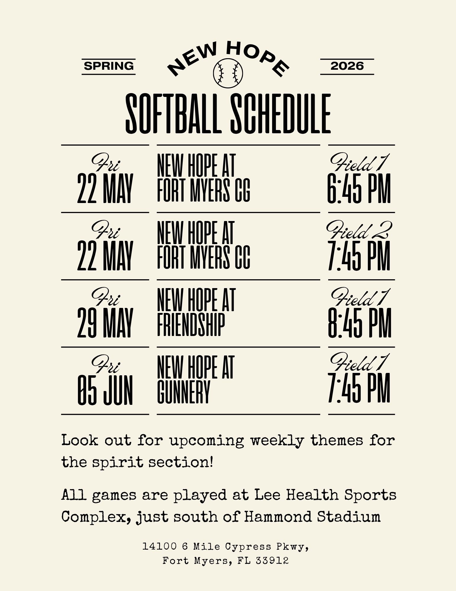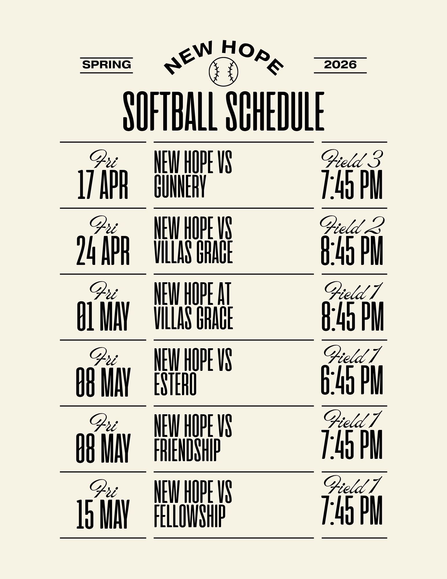 Softball Team Schedule